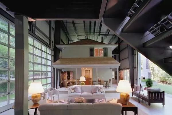 这房子很大,有很多不同的层次。你可以说这是一家”的房子,“因为里面大量的建筑是小的个体组成,看起来像一个传统的房间。事实上,室内与室外aremelded巨大的滑动玻璃门的房子一样的建筑里面。