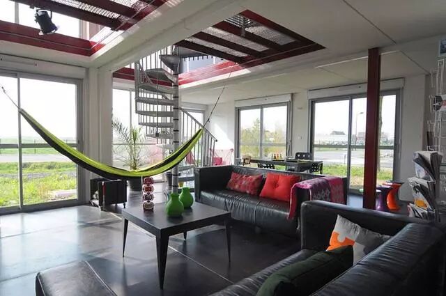 现在让我们看一看一个更复杂的项目。2010、法国建筑师帕特里克partouche设计了一种模仿传统的房子,尽管它是建立在货物集装箱的地方。这个当代集装箱房子大约有2240平方英尺,花费大约221000欧元来完成。
